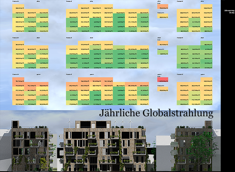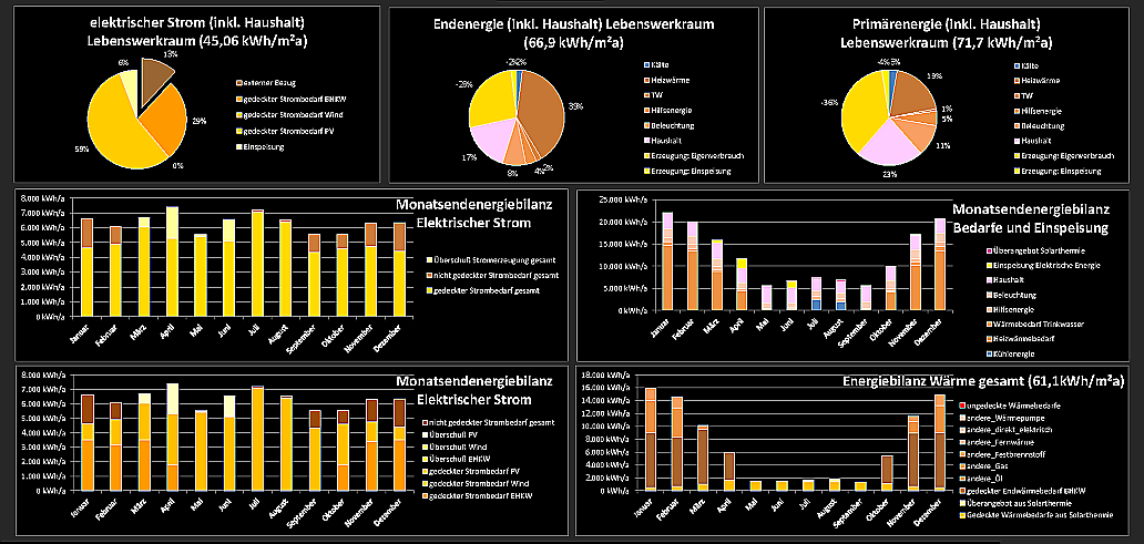 Photovoltaik in Dach und Fassade und einer intelligenten Gebäudeautomatisie- rung. Durch maximale gleichzeitige lokale Deck- ung des Energiebedarfs im Gebäude wird die größtmögliche Wirtschaftlichkeit und Netzunabhängigkeit des Gebäudes erreicht.