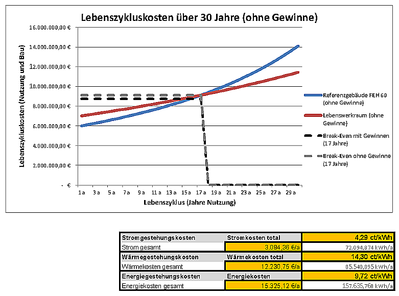 gesamten Lebenszykluskosten, d.h. der Bau- und Nutzungskosten inklusive etwa Wartung und Instandhaltung über den gesamten Lebenszyklus.